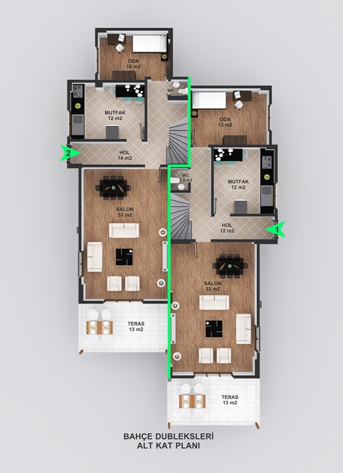 BAHÇE DUBLEKSLERİ ÜST KAT PLANI