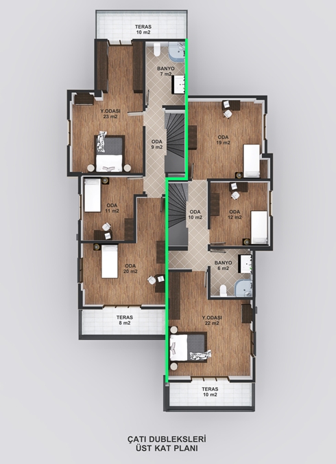 ÇATI DUBLEKSLERİ ÜST KAT PLANI