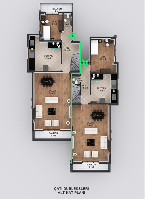 ÇATI DUBLEKSLERİ ALT KAT PLANI
